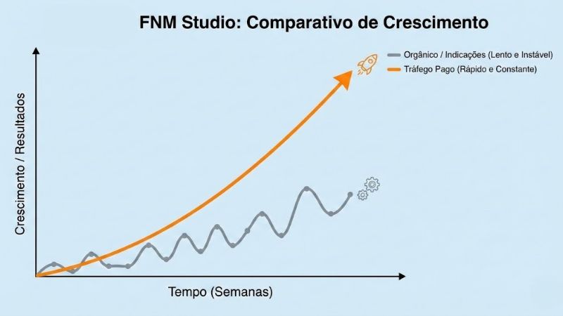 Muitos psicólogos talentosos vivem na “montanha-russa” financeira: um mês com agenda cheia por indicações e outro com horários vagos. Se a sua única fonte de novos pacientes é o “boca a boca”, o seu negócio está em risco. Em 2026, a previsibilidade é o novo ouro. Na FNM Studio, ajudamos profissionais a entenderem que o marketing digital não substitui a indicação, ele a potencializa e garante que o fluxo nunca pare.