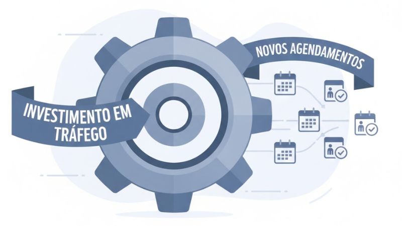 - Se você investe R$ 100,00 para trazer um paciente que fará 20 sessões, a sua escala é infinita. O tráfego pago é a engrenagem que permite que você saiba exatamente: “Se eu investir X, trarei Y pacientes”.