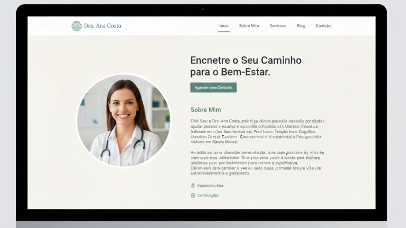 Criar um website permite que você apresente livremente sua abordagem terapêutica, suas especialidades e seu ambiente de trabalho. Ao contrário de uma plataforma padrão, você controla a mensagem e a atmosfera que deseja transmitir.