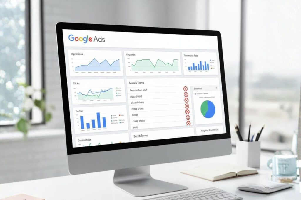 Ao adicionar “grátis” ou “planilhas” como palavras-chave negativas, você evita esses cliques desperdiçados. É um detalhe pequeno, mas crucial, e uma das partes mais importantes para gerenciar uma campanha publicitária lucrativa.